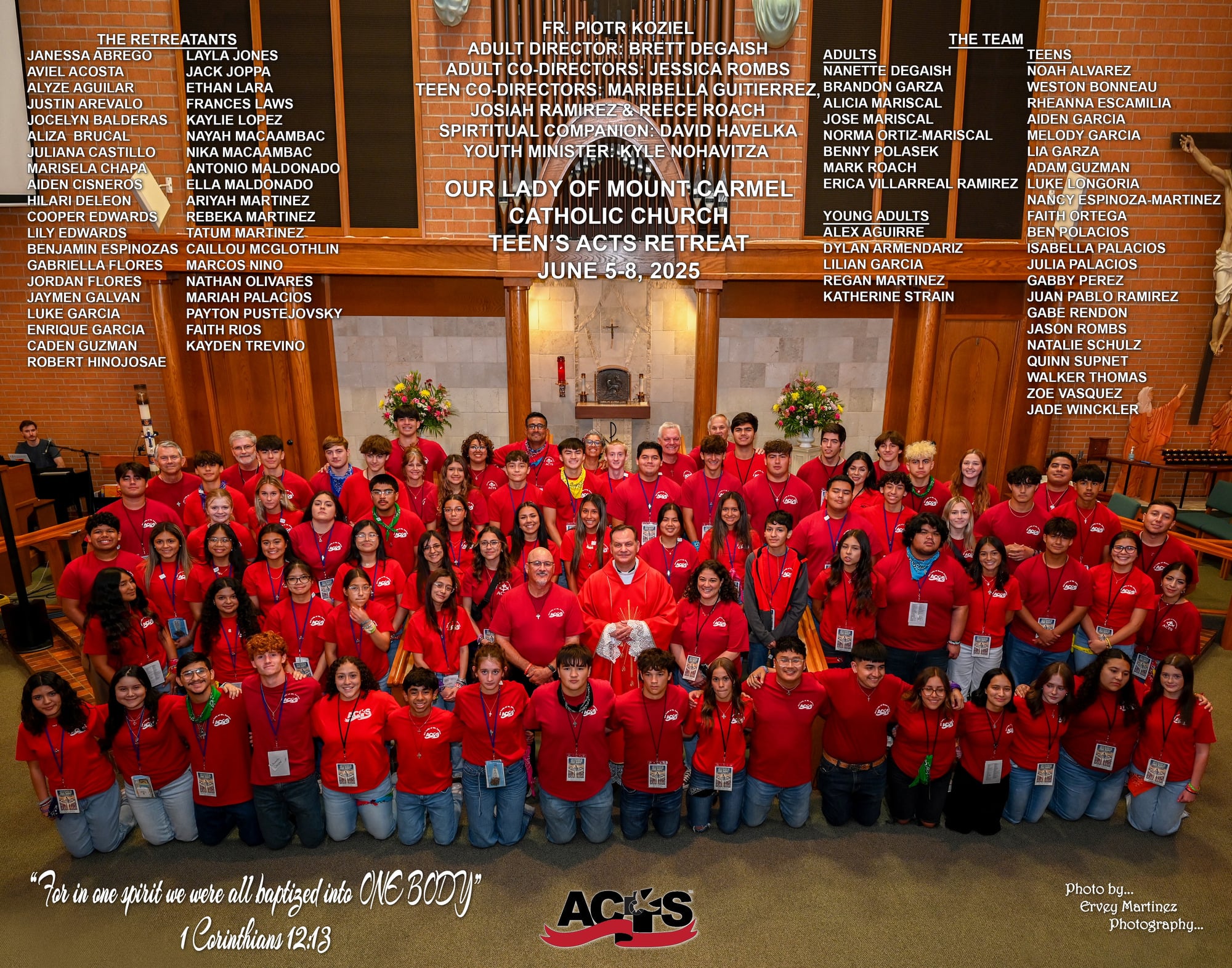 A.C.T.S. is a Catholic retreat movement presented by parishioners with the guidance of religious leaders. The goal of each retreat is to facilitate a deepening of our relationship with Jesus Christ, to renew us spiritually, to give new meaning to our prayer life, and to build lasting friendships with members of our parish communities. It is a 3-day, 3-night Catholic lay retreat presented by fellow parishioners like yourself. Much of the weekend will be spent with a team from our parish who face the same difficulties as you are living in today’s world. The weekend will be filled with talks, reflection time, singing, praising, the Sacraments, and sharing the blessings with the Lord. The retreat begins on a Thursday evening, with check-in starting at 5:15 p.m. in the OLMC parish hall, and ends on Sunday following the 11 a.m. mass with a closing meal provided in the parish hall for retreatants and family. Transportation to and from the retreat center (Our Lady of Corpus Christi) is provided.