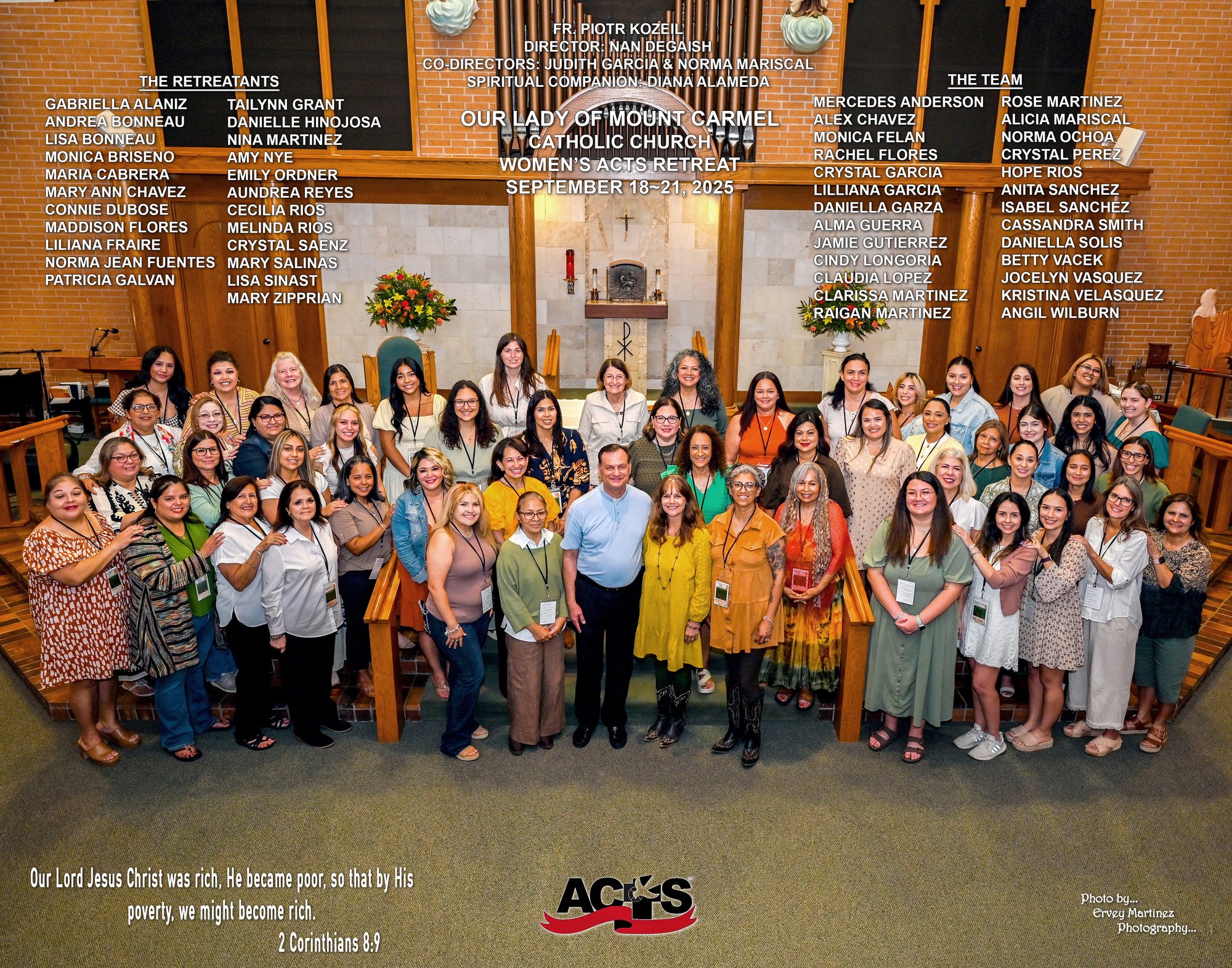 What does A.C.T.S. stand for: It is an acronym for Adoration, Community, Theology and Service and it is these four themes that are the focus of the activities of a retreat weekend. The A.C.T.S. weekend is an opportunity for retreatants to develop a deeper relationship with the Lord and fellow parishioners through Adoration and daily prayer, Community with the parish as members of one Body of Christ, Theology as taught by our Catholic faith and study, and Service to our Lord and one another for the building up of the kingdom of God.